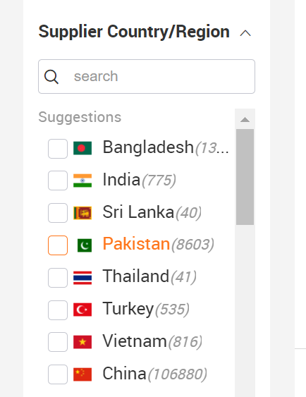 如下圖,我們搜索男士襯衫,搜索結果顯示還有孟加拉國、印度等國的供應商。