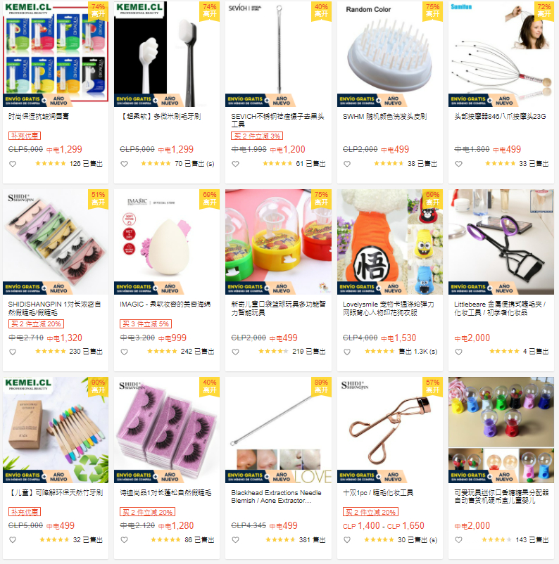 ● 熱銷:牙刷、假睫毛、去黑頭工具、寵物衣服、睫毛夾、隱形眼鏡