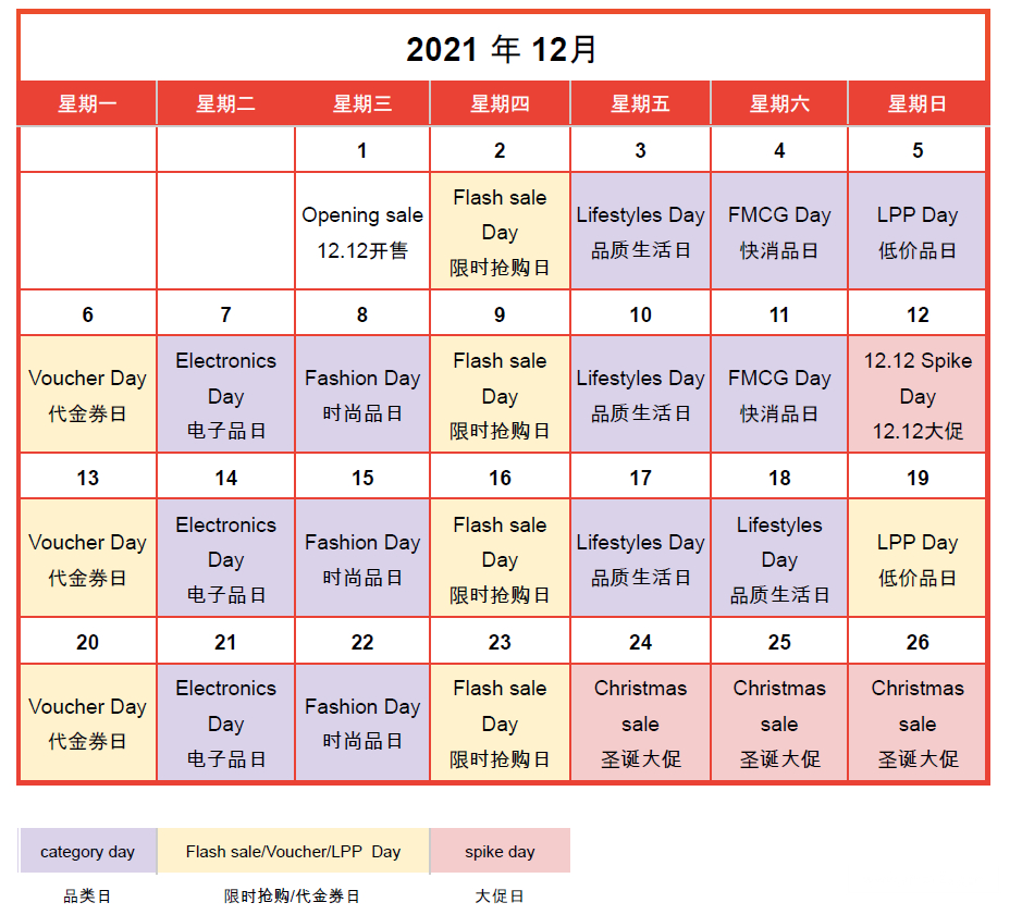 12.12 Christmas Sale 活動日歷 :