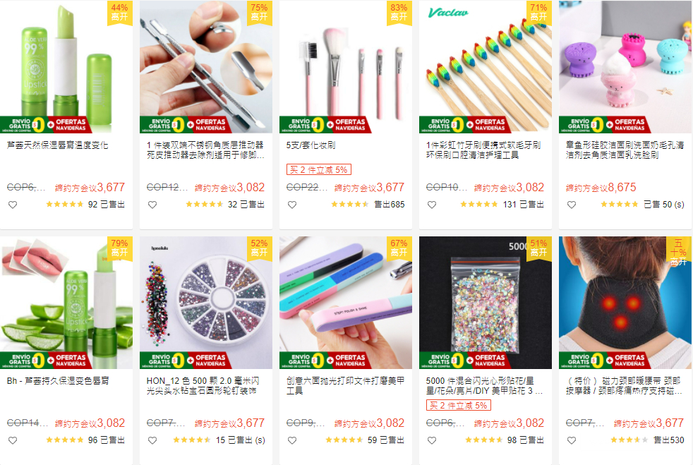 ●熱銷:潤唇膏、牙刷、潔面刷、頸部按摩器、美甲工具/裝飾、解壓玩具、減肥貼、假睫毛、睫毛夾