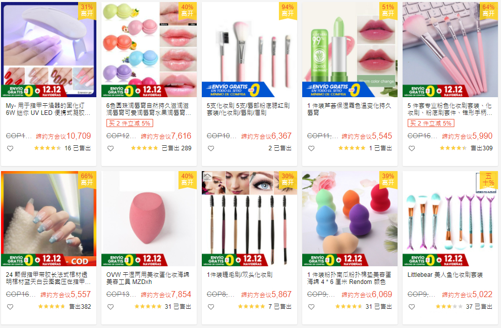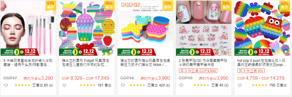 ●熱銷:化妝刷、美甲工具、解壓玩具、減肥貼、假睫毛、睫毛夾、潔面刷