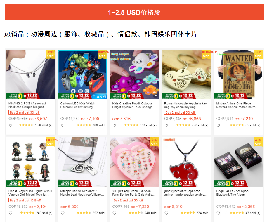 1. 各價格段熱賣商品:?