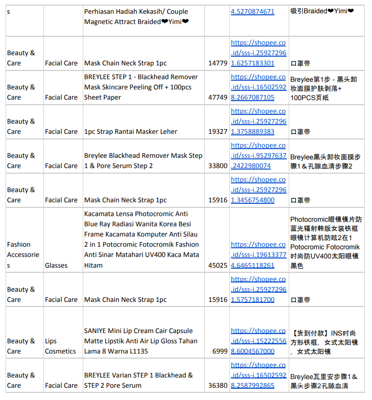 3、印尼市場本周熱搜產品