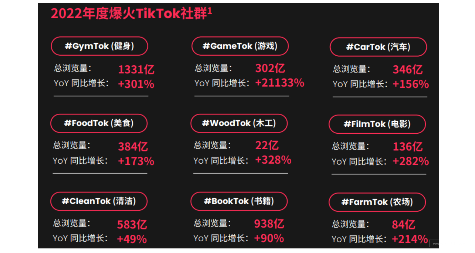 TikTok for Business 通過分析2022年不同流行現象的時效和范圍,對趨勢進行分類總結,展現出2023年至關重要的三大趨勢主題、九大長青趨勢以及超二十余個潮流信號,從社群、內容、影響力的變化,為中國出海品牌主提供制定2023年營銷策略的啟示。