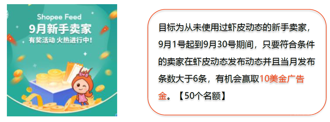 九月份的feed福利持續(xù)發(fā)放中,賣家朋友們可多多發(fā)動態(tài)來贏取獎勵!詳情如下: