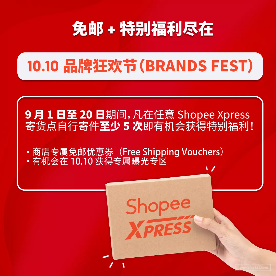 為鼓勵大家自行寄件,9?月 1?日 -?20?日期間在任意 Shopee Xpress 寄貨點自行寄件至少 5 次(其中兩次需為 9.9 和 9.15 當天的訂單)的賣家將有機會在?10.10 品牌狂歡節(Brands Fest)獲得超值獎勵!