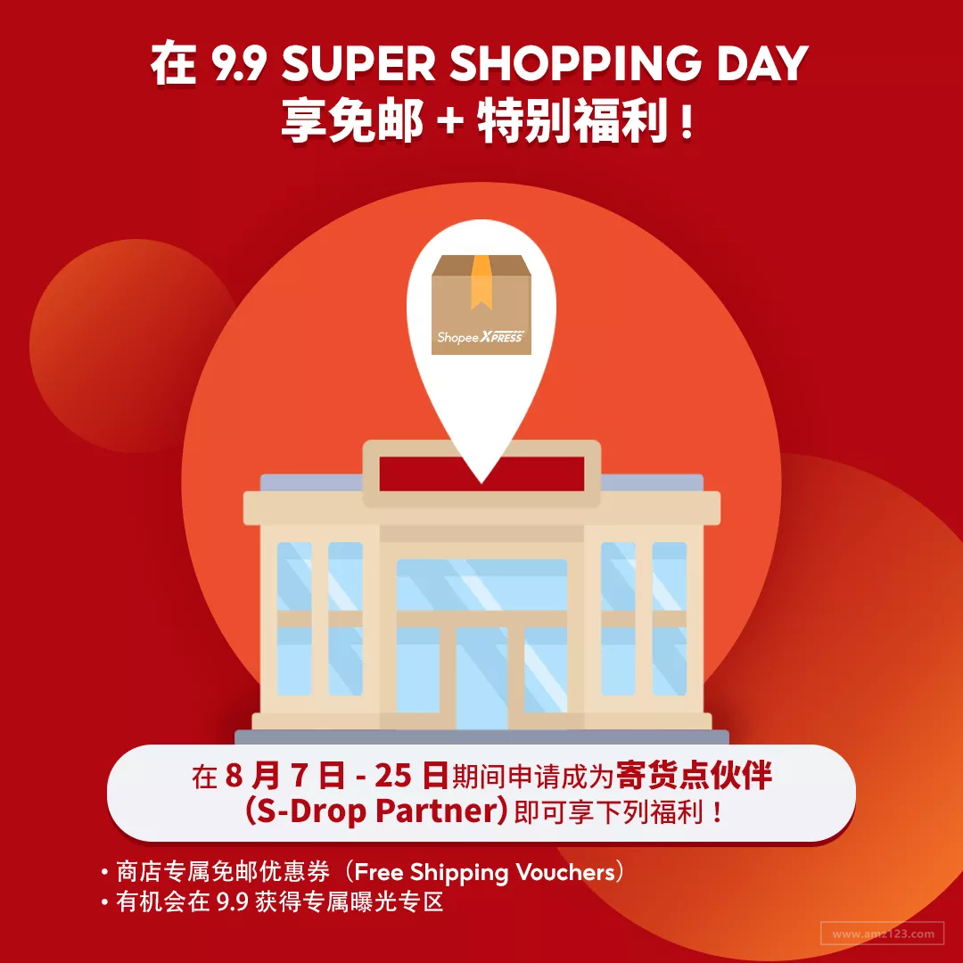 為鼓勵大家踴躍報名成為 Shopee 寄貨點伙伴(S-Drop Partner),8?月 7 日 -?25 日期間申請的賣家可在?9.9 Super Shopping Day?獲得超值獎勵!