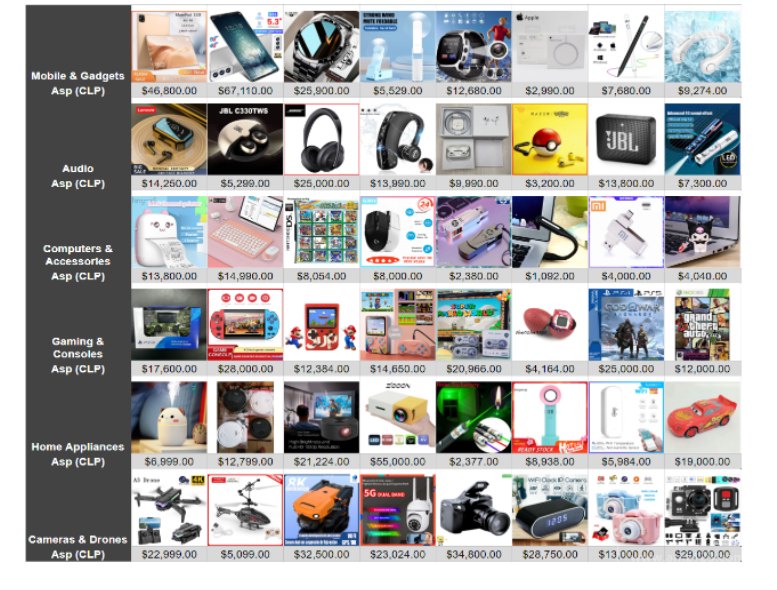 *注:CLP指智利比索,Price指價格,Mobile & Gadgets 指手機 & 配件,Audio 指音箱,Computers &