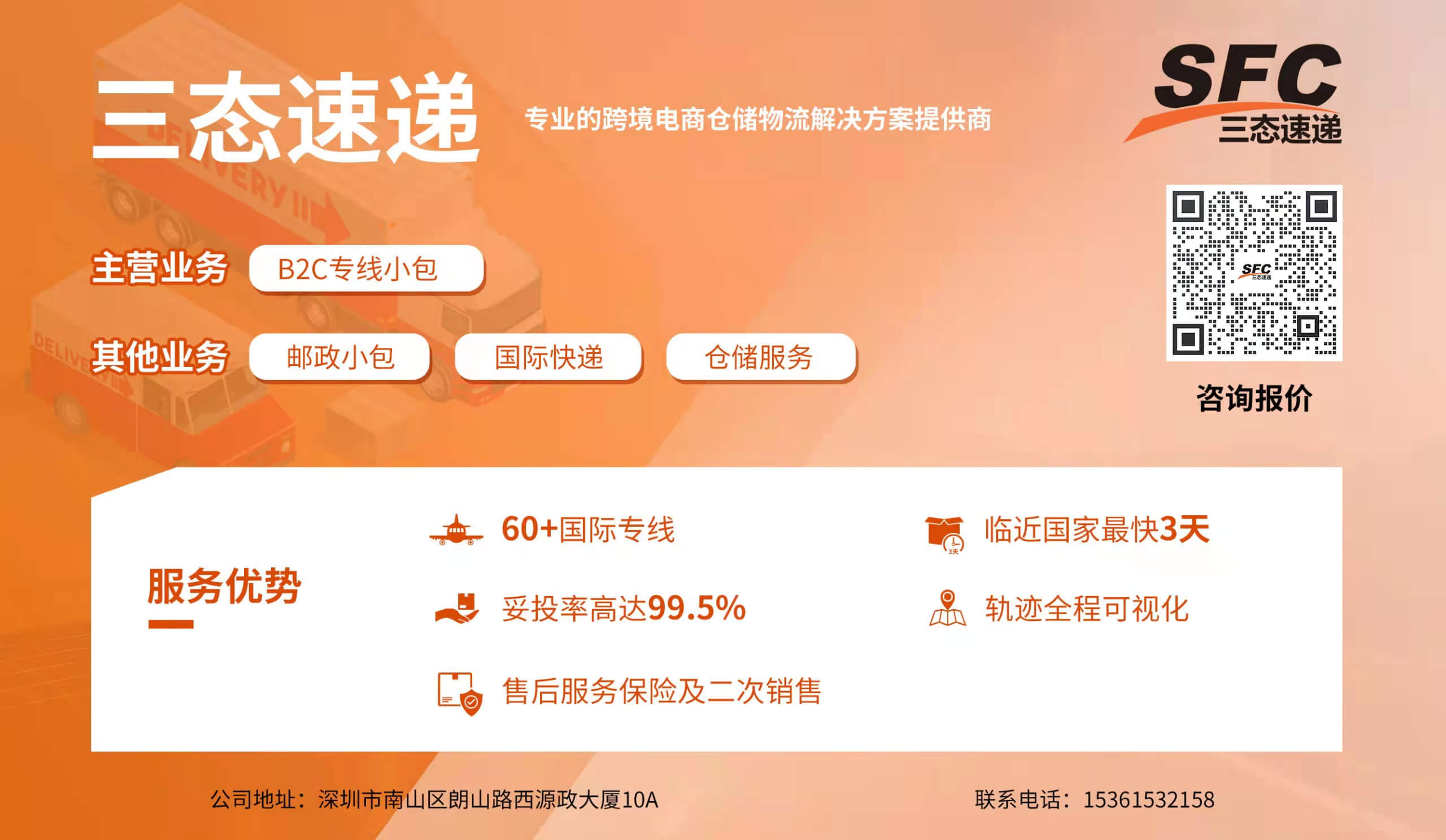 深圳前海三態(tài)現(xiàn)代物流有限公司(三態(tài)速遞)是中國領先的跨境物流服務商,提供B2C商業(yè)專線渠道、郵政小包、FBA頭程等跨境物流服務及中國倉儲服務。